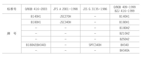 供貨標(biāo)準(zhǔn)、牌號(hào)與相當(dāng)或相近標(biāo)準(zhǔn)、牌號(hào)對(duì)照表: